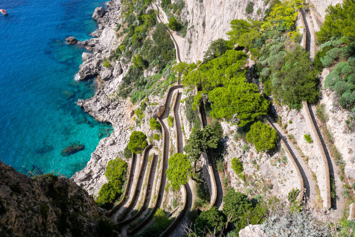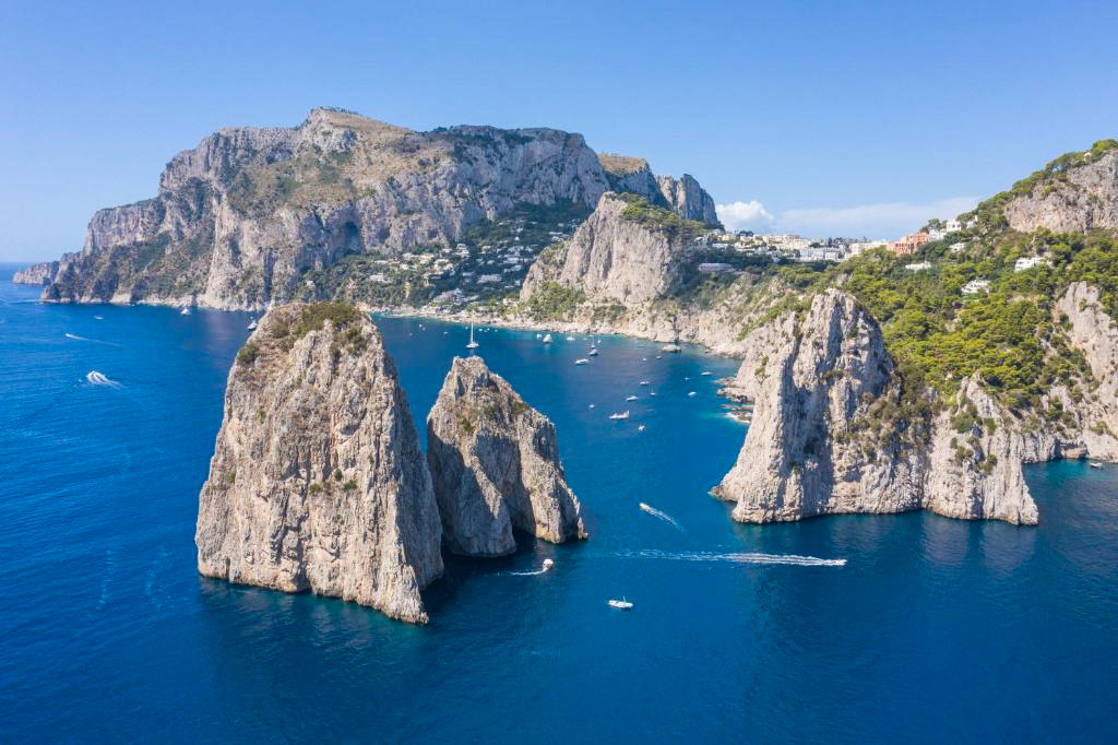 These rocky, steep, vertiginous cliffs, Capri’s signature landmark, provide breathtaking vistas from all around the island: Punta Tragara, the Augustus Gardens, and the Canon Belvedere overlooking the Faraglioni rocks and the southern coasts, while Villa Lysis and Villa San Michele offer perspectives on the northern ones. And then, there is Mount Solaro: the highest peak of the island leaves visitors questioning whether they are still on earth or have ascended into the sky, like modern Olympian Gods.