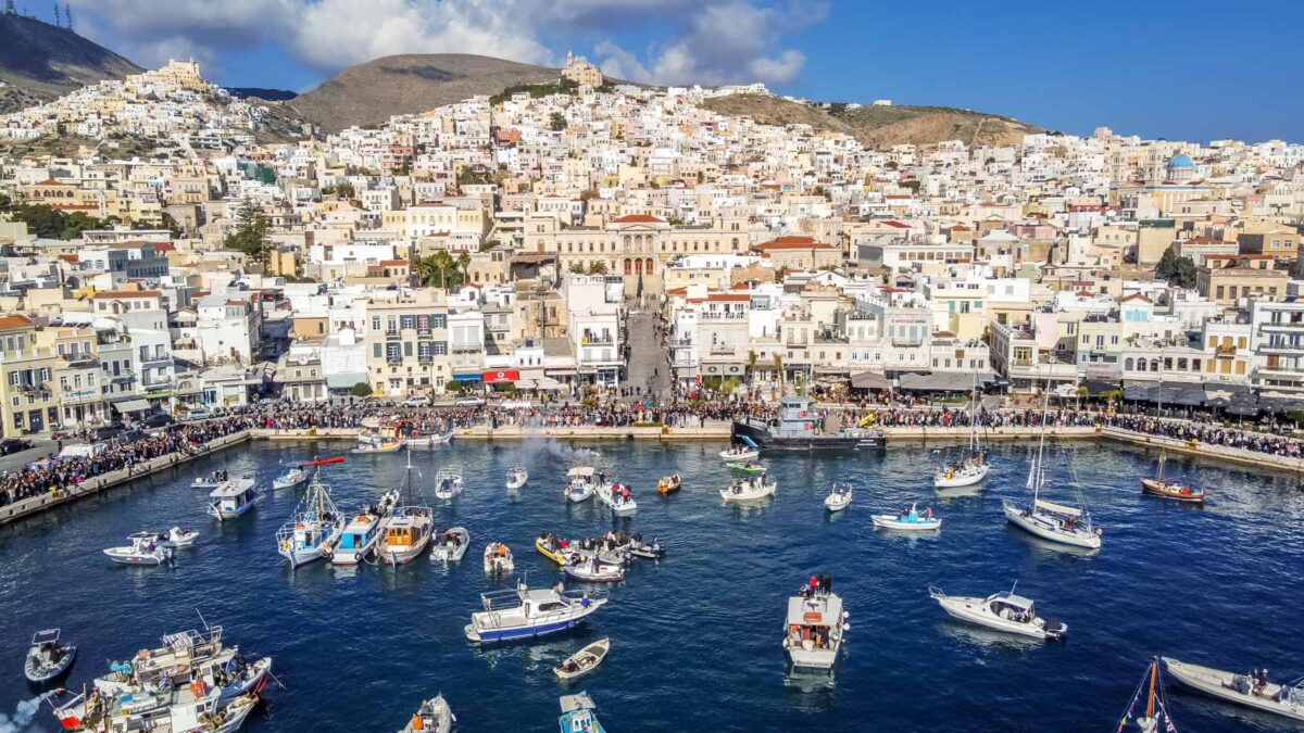 During the 19th century, travelers discovered Ermoupolis’s metropolitan appearance with great amazement, as evidenced by their enthusiastic notes. Photo credit: Yannis Vacondios @sky_world_amazed.