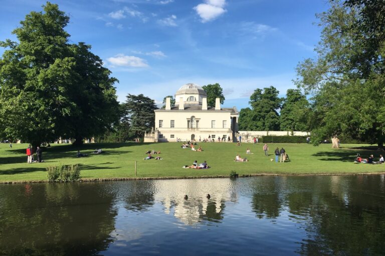 The Chiswick Gardens and the Kew Royal Botanic gardens with their rare plants and flowers.